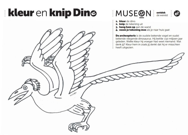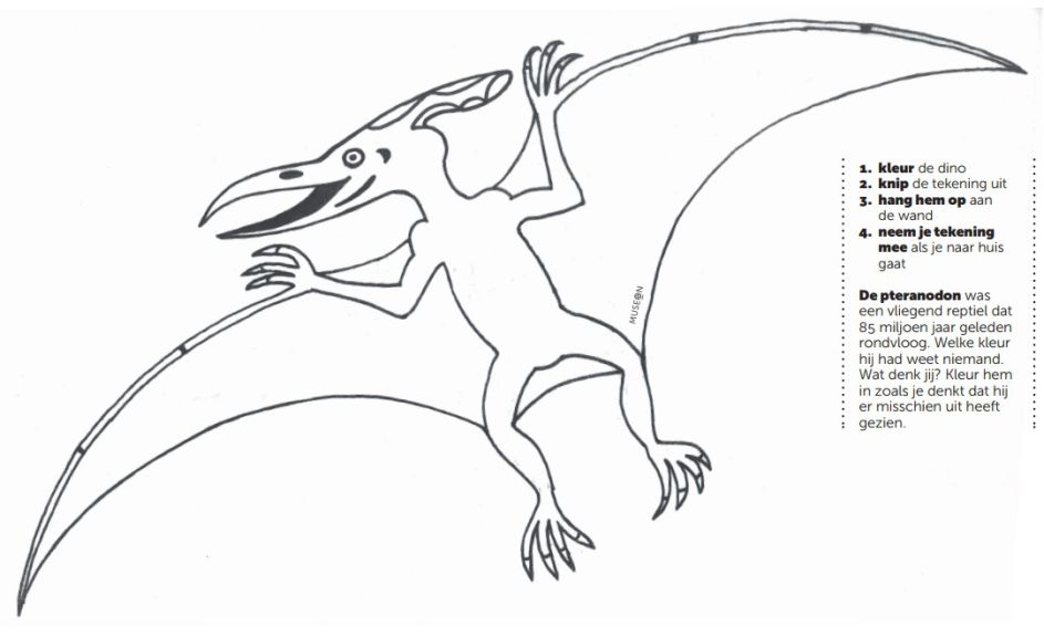 Kleurplaten van een Archaeopterix en een Pteranodon. Niemand weet welke kleuren deze dieren echt hadden. Kleur ze zoals je denkt dat ze eruit hebben gezien!