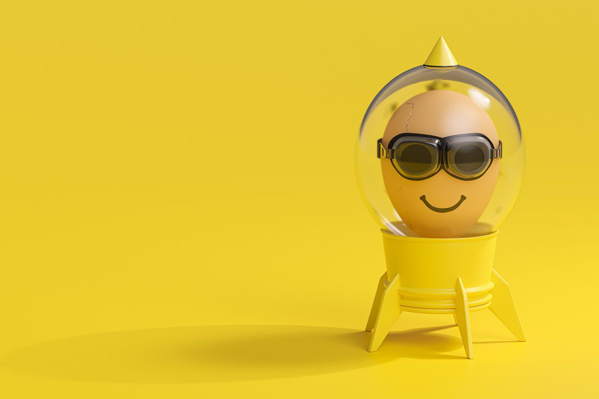 Dit is onze astronaut. Of eigenlijk: ei-stronaut.