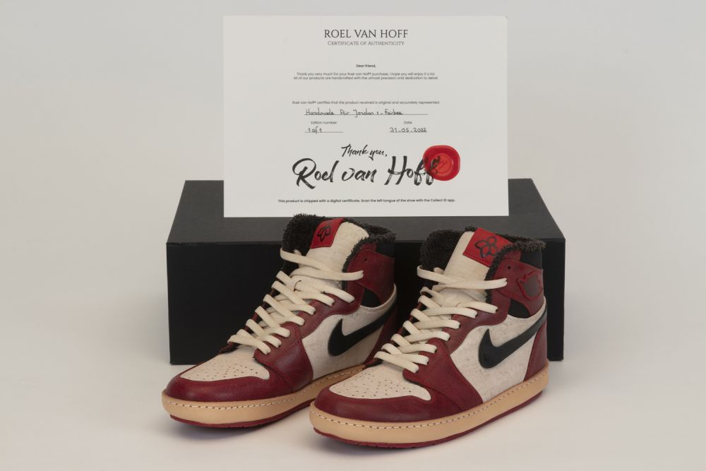 Deze unieke sneakers zijn een inspirerend voorbeeld van vakwerk en ondernemerschap! In het najaar zal deze Fair Jordan 1 geveild worden. Saja Chander, directeur van Fairbee, geeft deze sneakers graag aan Museon-Omniversum in bruikleen. Nu te zien in One Planet NOW!