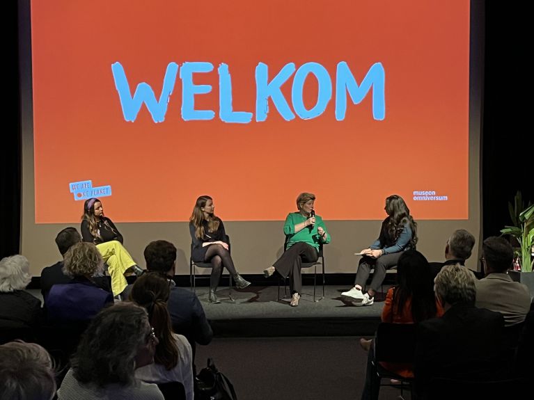 Daarna volgde een paneldiscussie, onder leiding van Hajar Yagkoubi, met drie mensen die ieder op een andere manier met de Verenigde Naties bezig zijn.