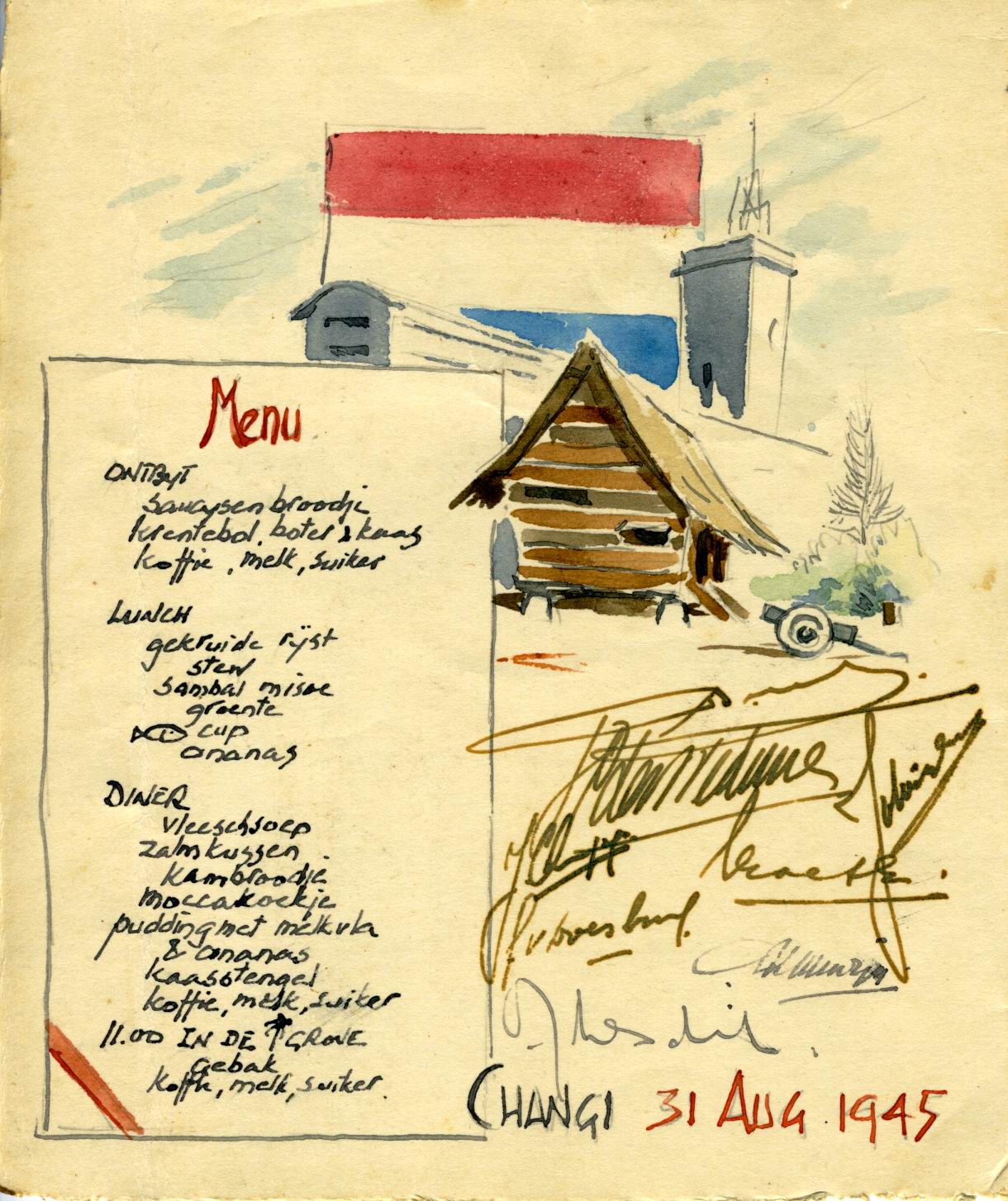 Na de Japanse capitulatie gooiden geallieerde vliegtuigen drums met voeding, kleding en medicamenten naar beneden. Van sommige ging de parachute niet open, waardoor ze dwars door de daken van onze barakken heen sloegen. Bij zo’n inslag kwam opeens een van de krijgsgevangenen door het gat in het dak naar buiten met een Nederlandse vlag in zijn hand. En maar zwaaien en zwaaien! Het moreel stond in ieder geval weer op een hoog peil.