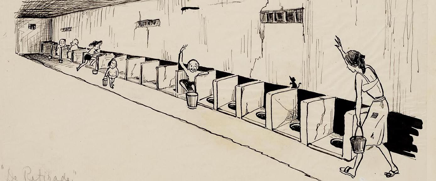 Joke Broekema, Ons toilet. Vrouwenkamp Aek Pamienke III, Sumatra, 1945. Coll. nr. 111668
