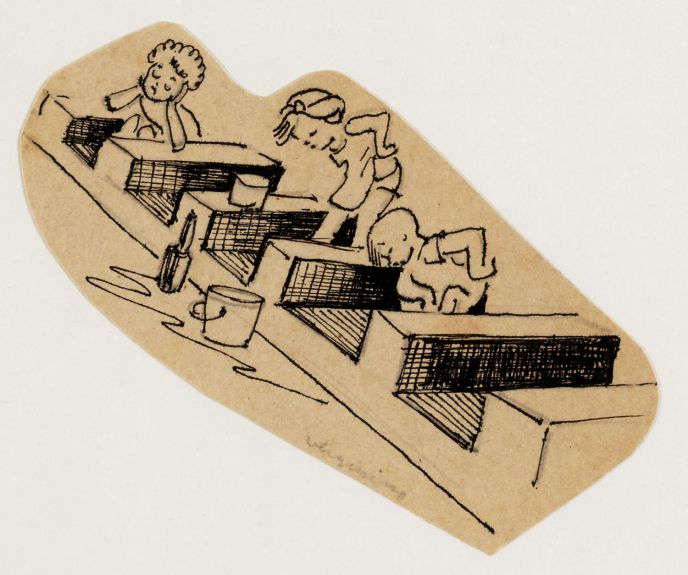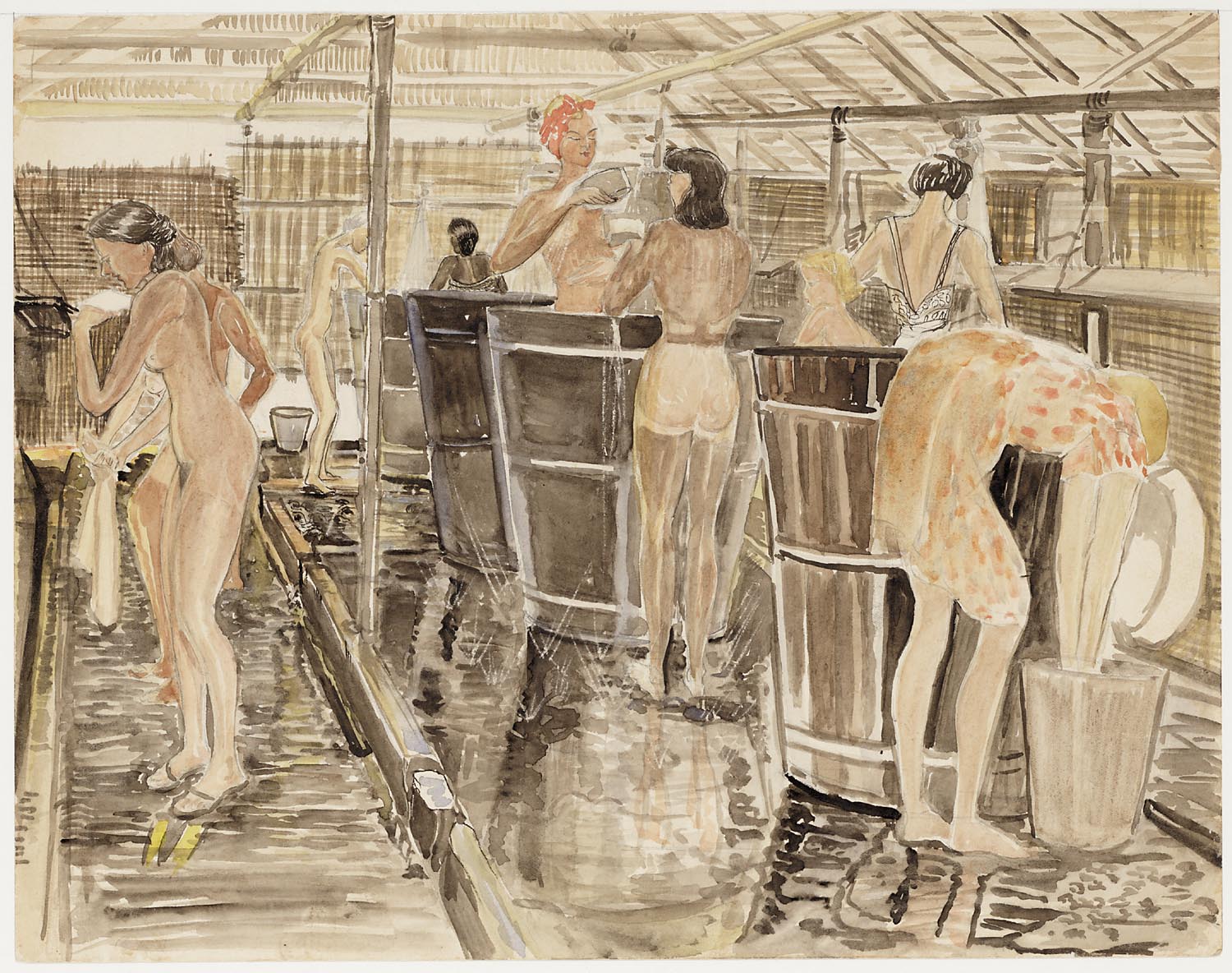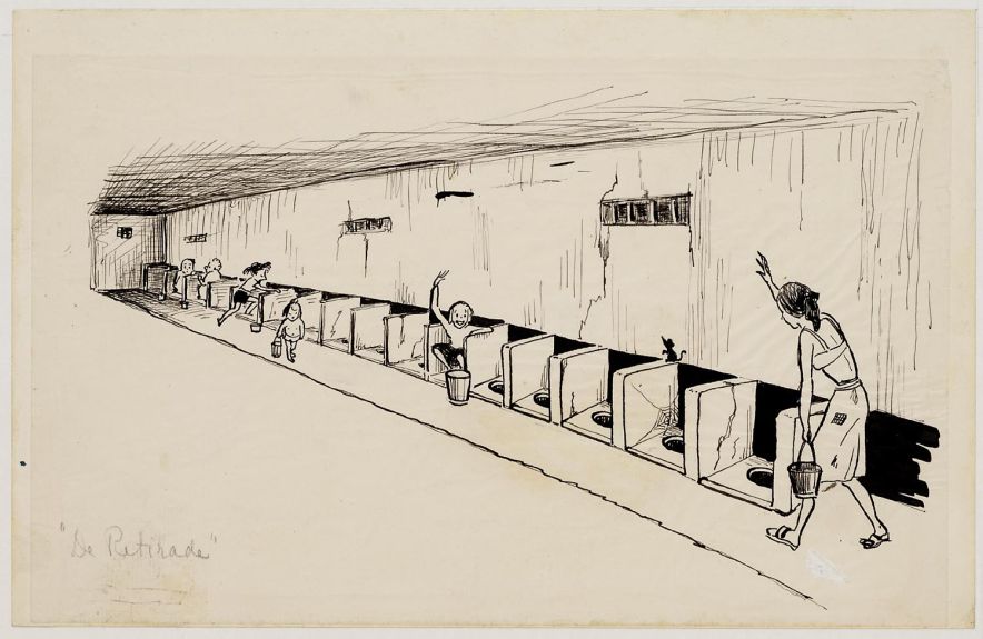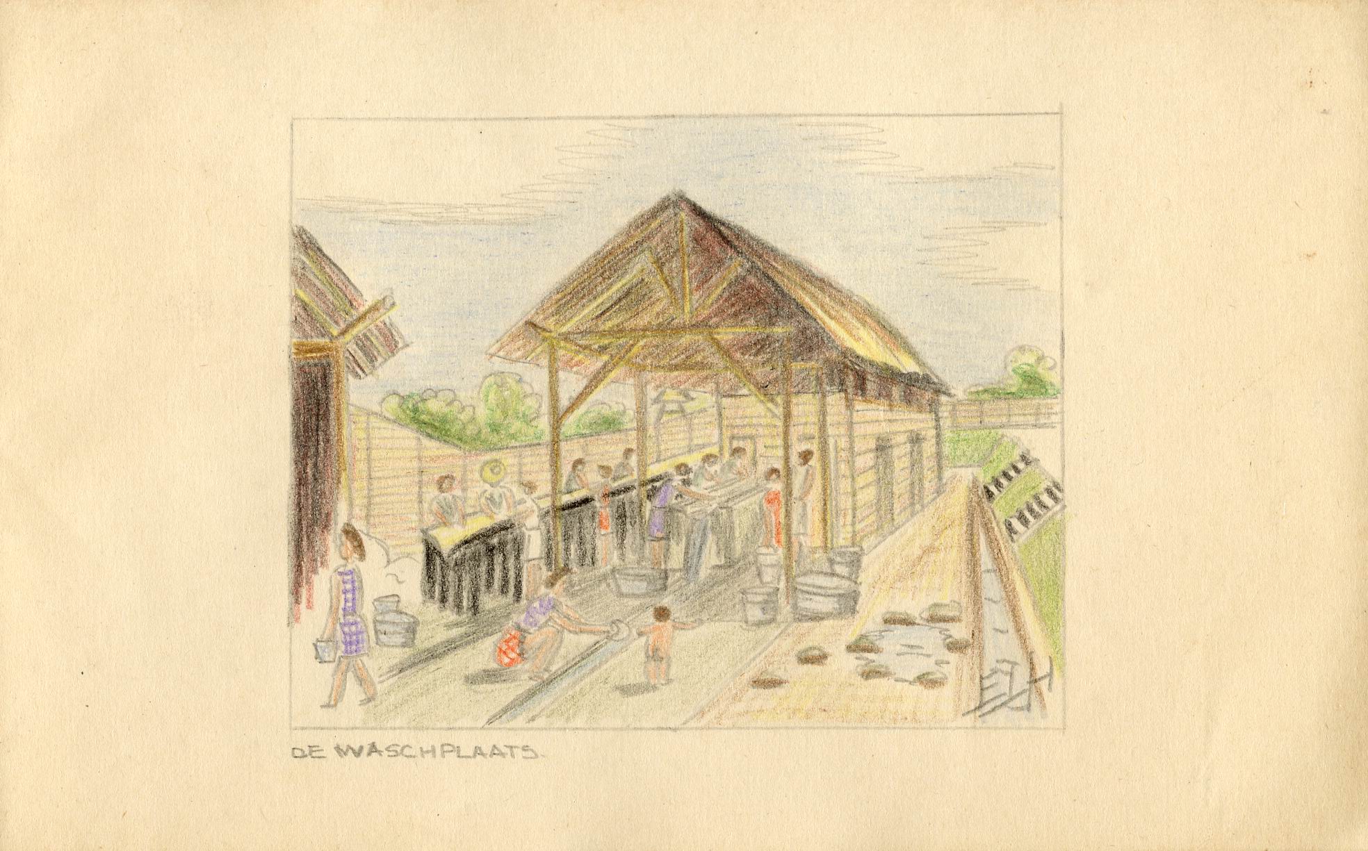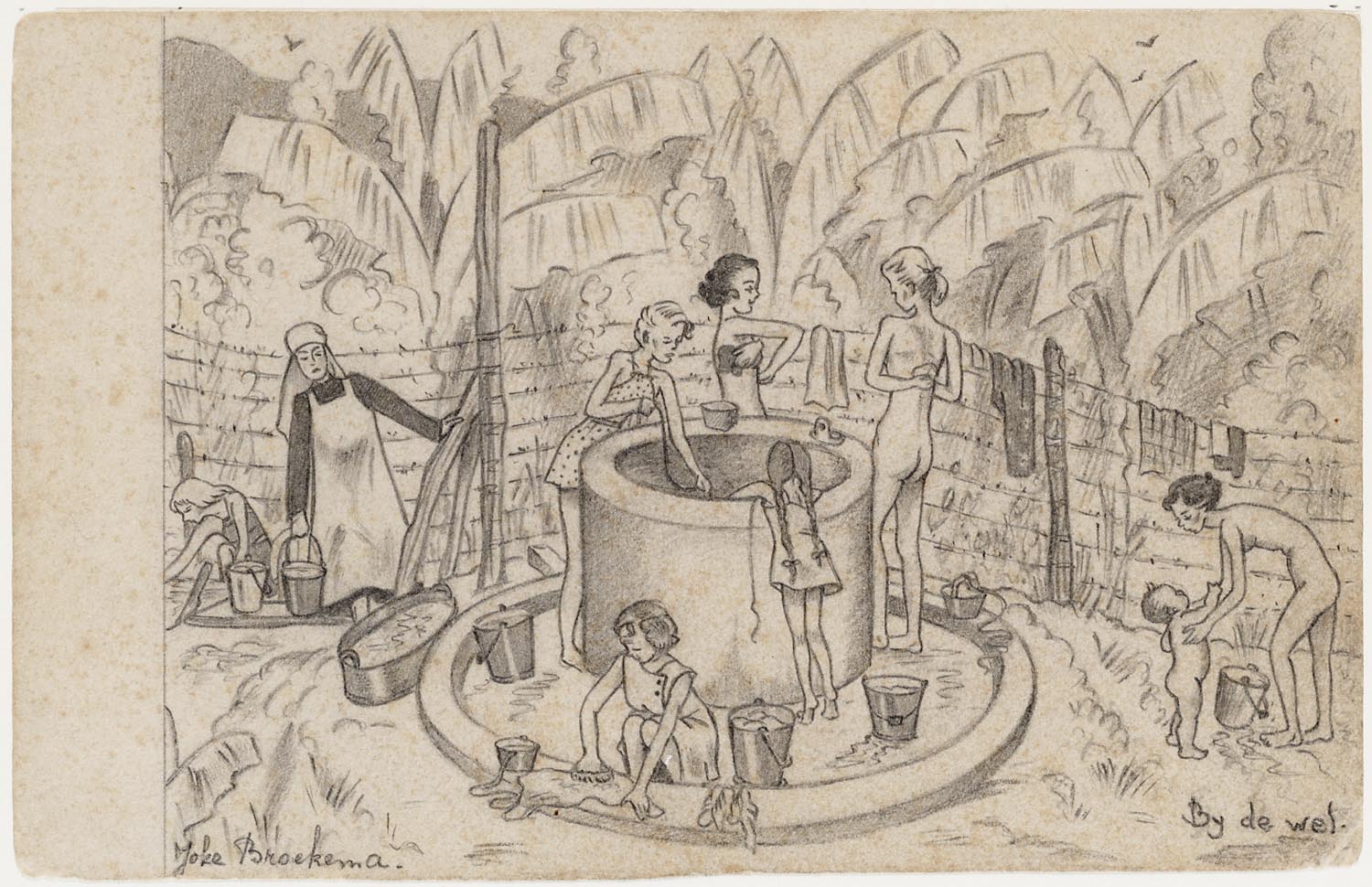 Joke Broekema, Ons toilet. Vrouwenkamp Aek Pamienke III, Sumatra, 1945. Coll. nr. 111668