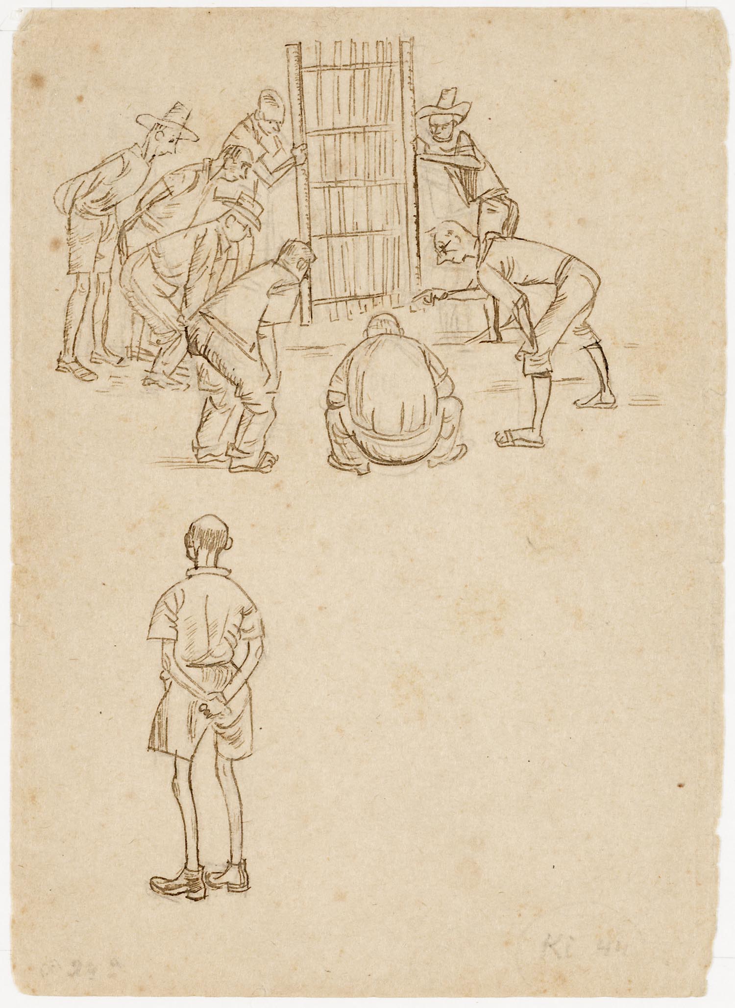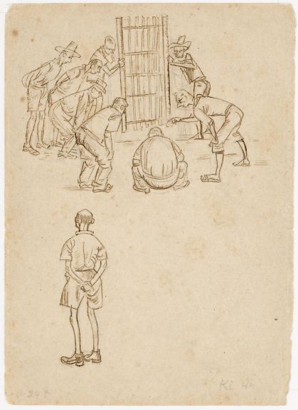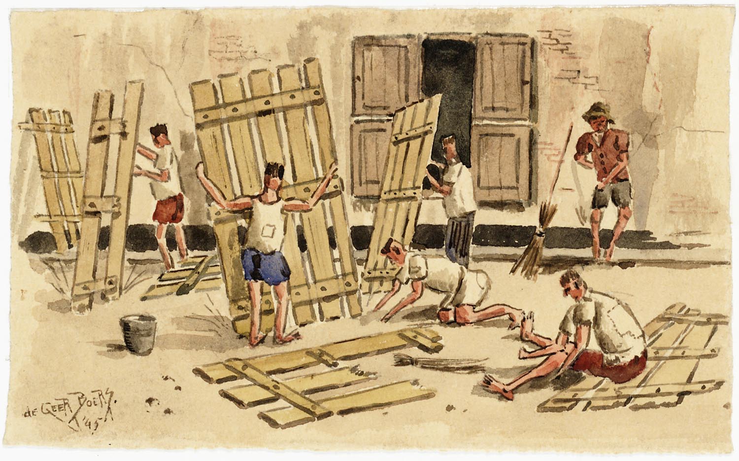 A.J.L. de Geer Boers, Het ontluizen der beddenplanken. Krijgsgevangenkamp Kampement 4de + 9de Bataljon Tjimahi, 1944. Coll. nr. 66445 (2/2)