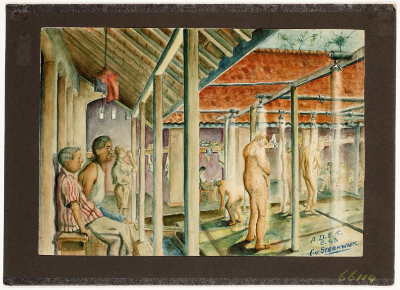 Het is een typische kampscène. Er is een verslag van Gerard Weijers die als jonge jongen in hetzelfde kamp zat, het Kampement 4de + 9de Bataljon in Tjimahi: ‘