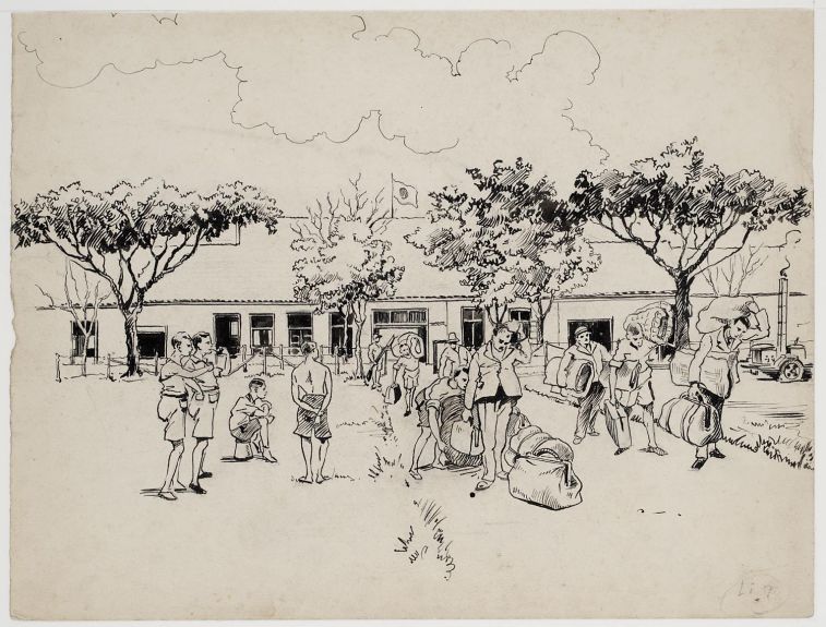 Romke de Vries, Een pakje voor een gevangene. Krijgsgevangenkamp Ondaatjekamp, Java, 1942. Coll. nr. 66402 (24/43)