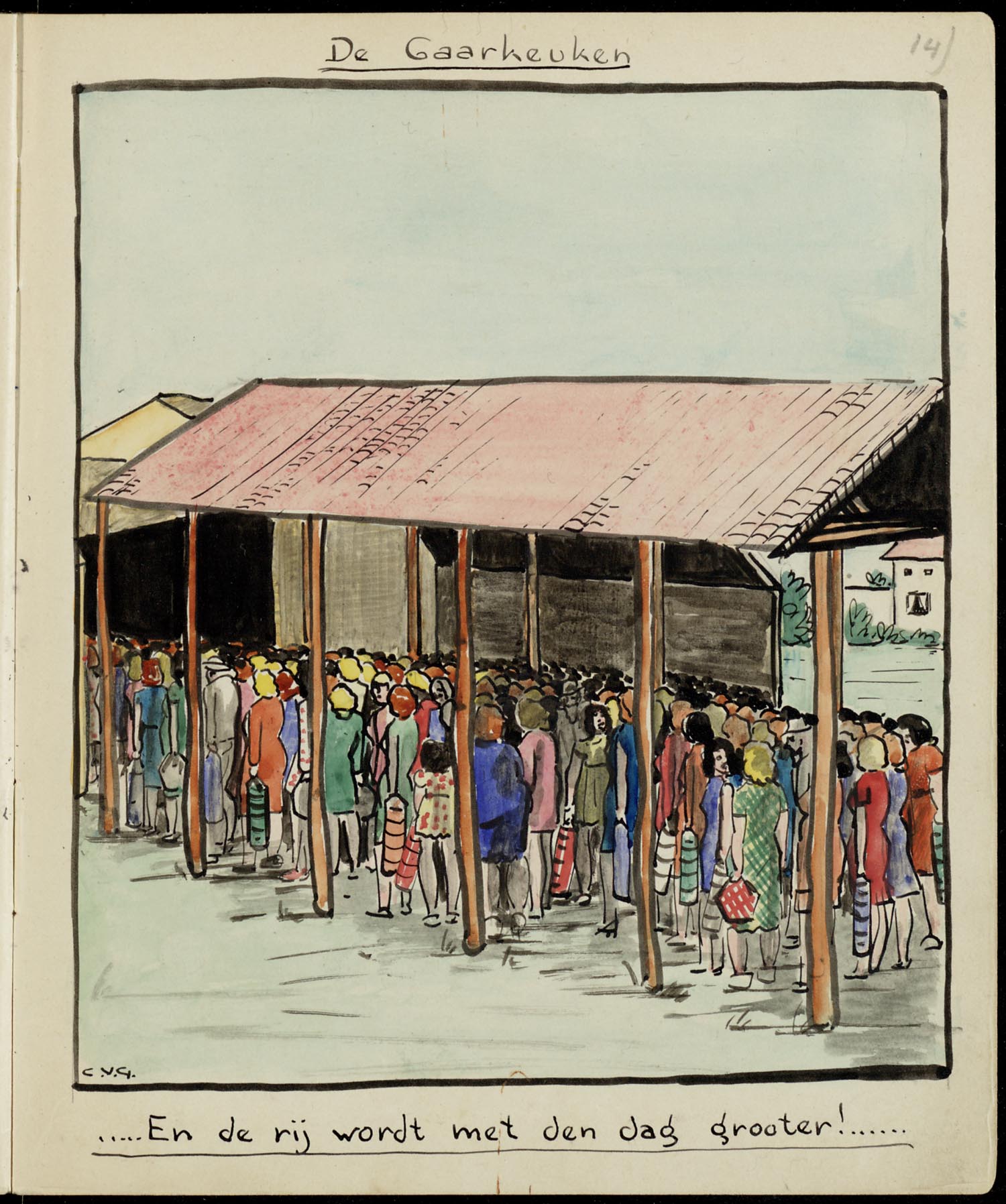 • Conny van Grondelle, De gaarkeuken. Vrouwenkamp Kareës, Java, 1943. Coll. nr. 60419a (14/46)