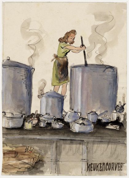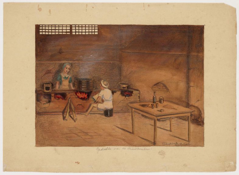 • A.M. Steensma, Kampkeuken. Vrouwenkamp Kedoengbadak, Java, 1942-1944. Coll. nr. 101269 a