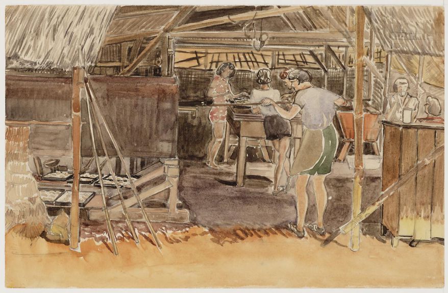 • Hendrika Hendricks-Reints Bok, Dieetkeuken. Vrouwenkamp Lampersari-Sompok, Java, 1944, 1945. Coll. nr. 66372