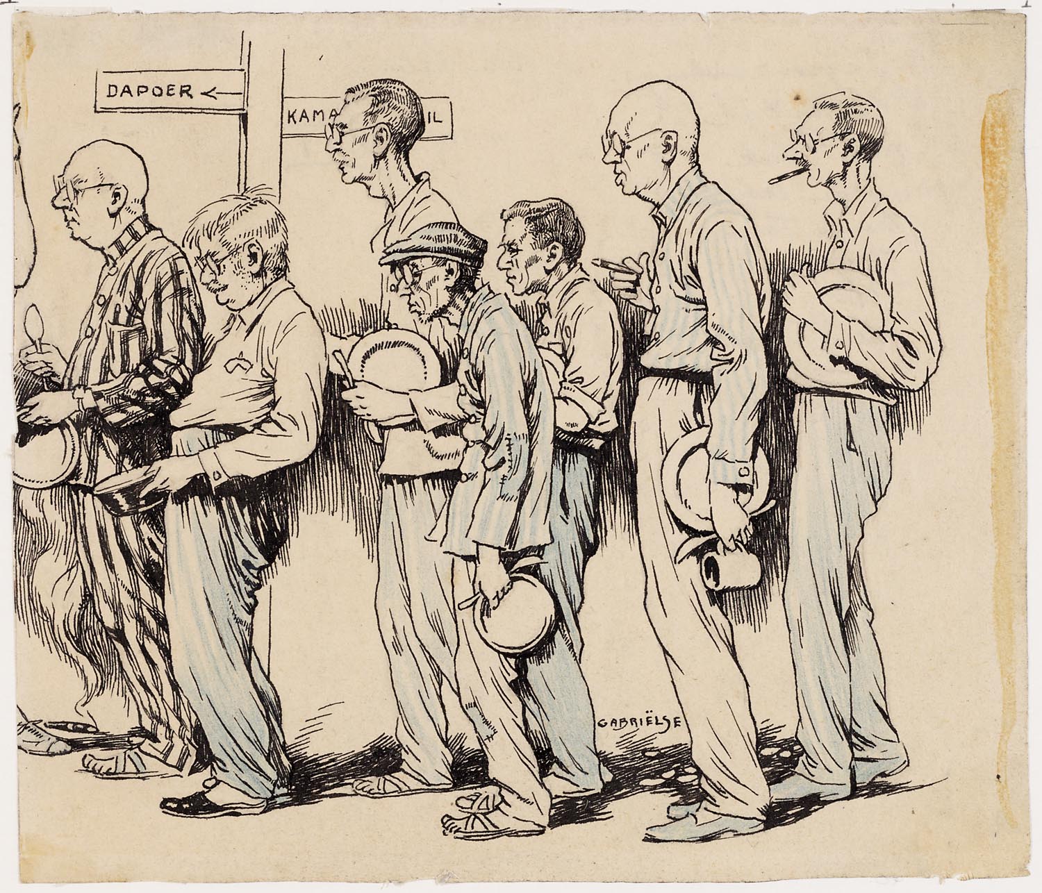Gerrit Post, Heet water halen voor thee of koffie. Krijgsgevangenkamp 15e Bataljon Bandung, Java, ca. 1945. Coll. nr. 66332